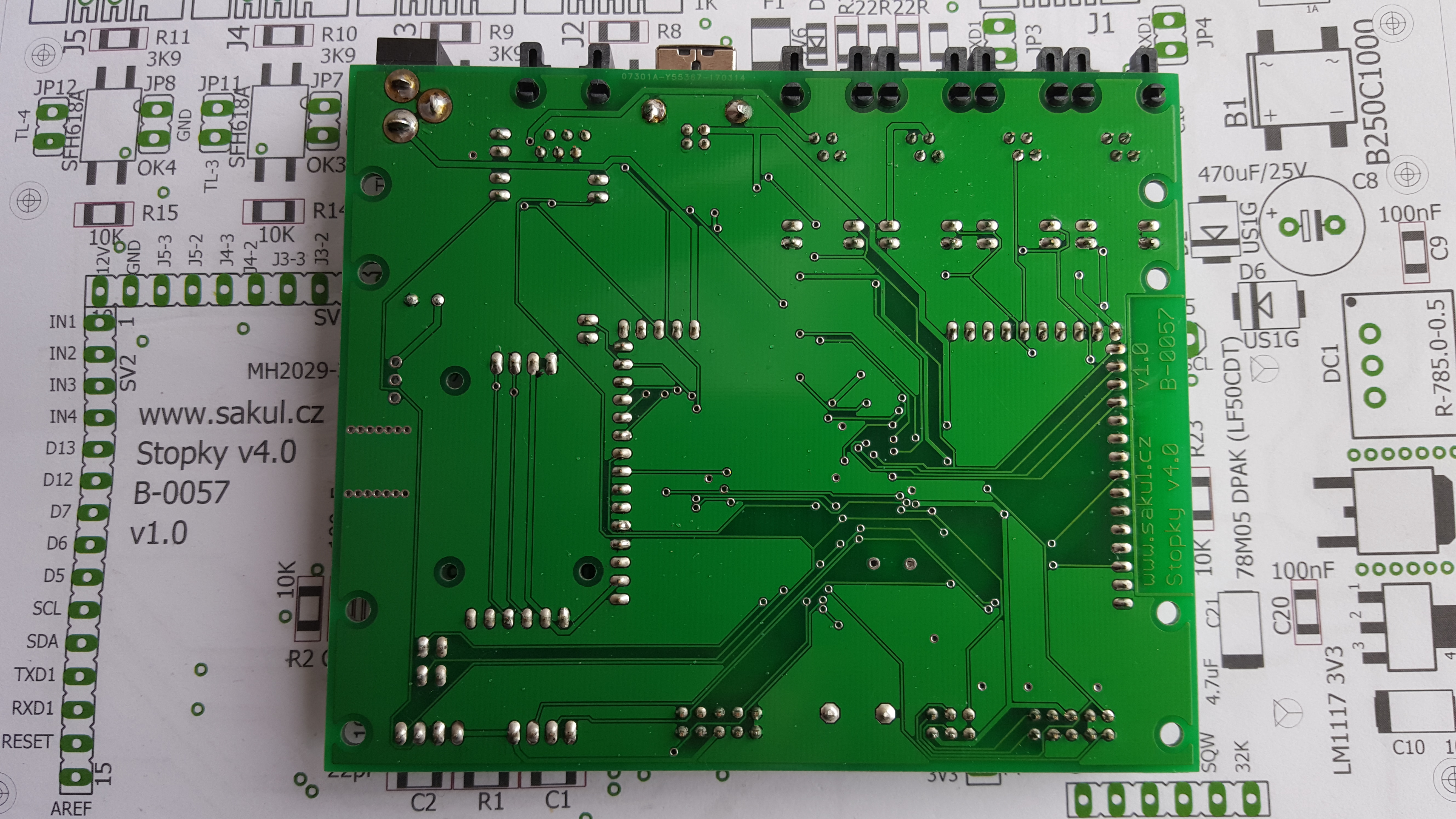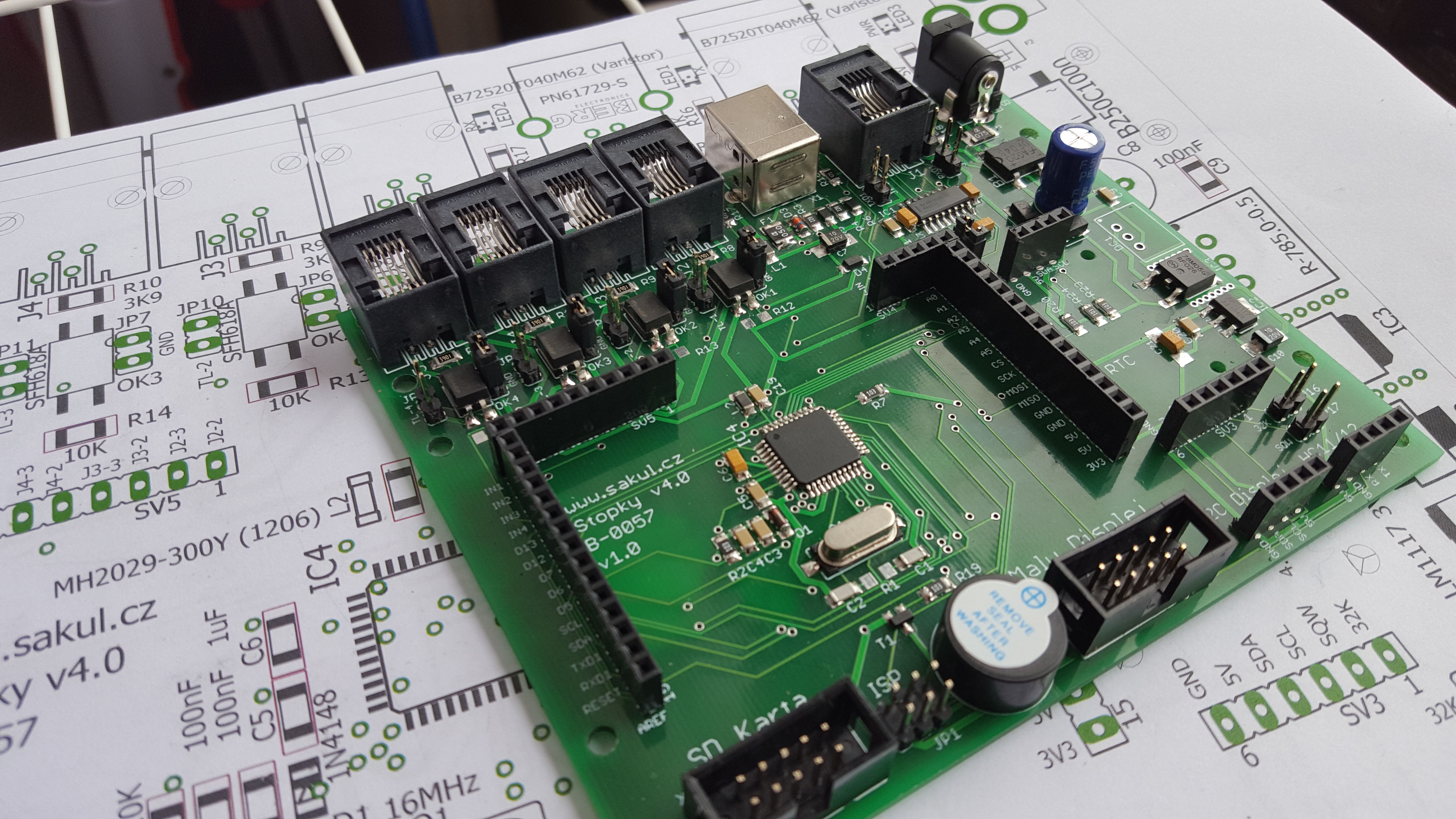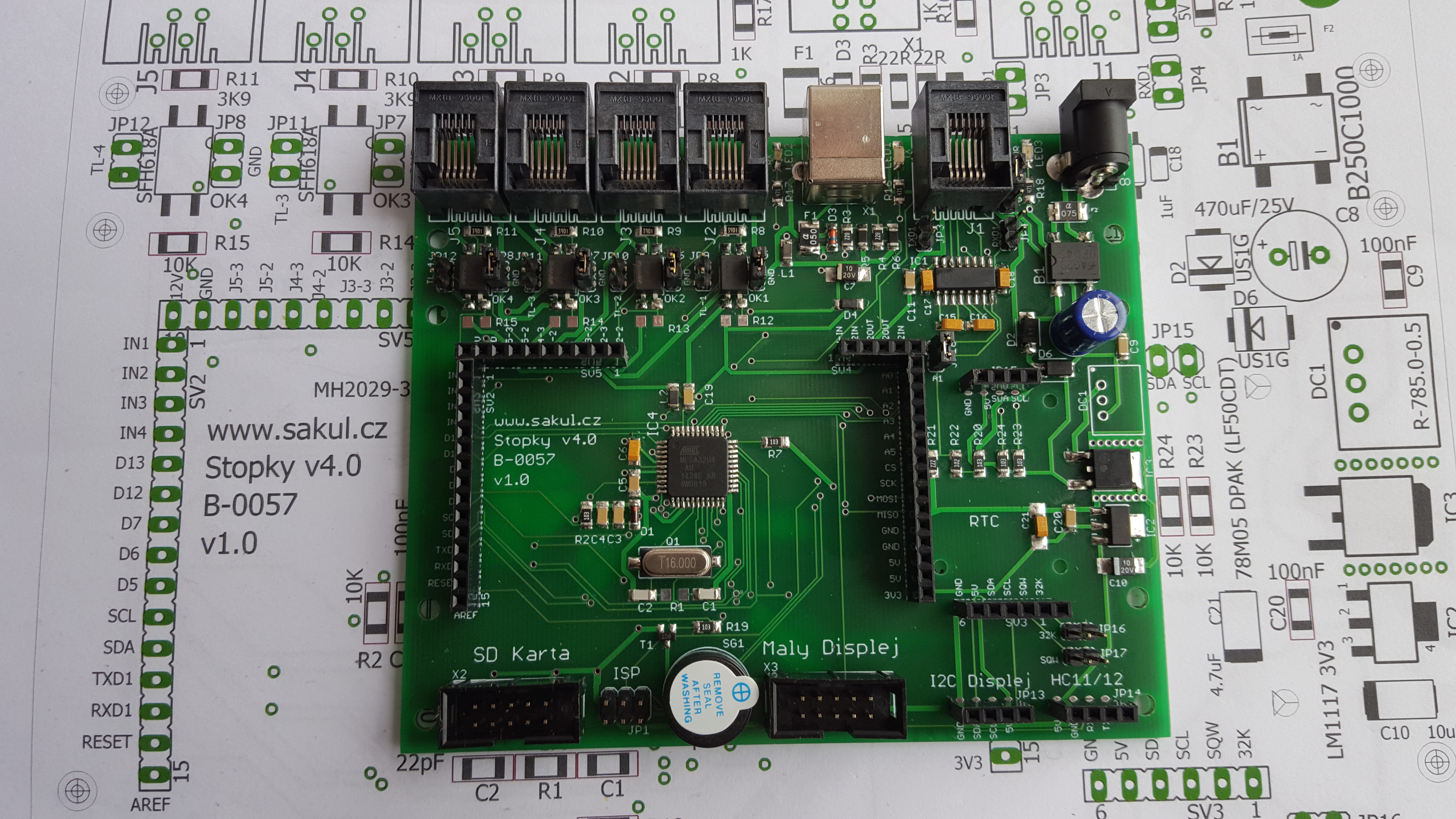 Nicméně mohu oznámit, že dnes jsem dokončil stavbu prvního prototypu, který by měl zvládnout vše co bylo v plánu. Opět se sice vloudilo několik chybiček, ale ty nemají vliv na funkci, spíše jsou kosmetické. Je teda fakt, že nebylo ještě všechno otestováno, takže se může na nějaké chyby přijít, ale věřím, že to nebude kdyžtak nic zásadního. Na stejné desce jsem už postavil jedny stopky na zakázku a všechny hlavní komponenty fungují.