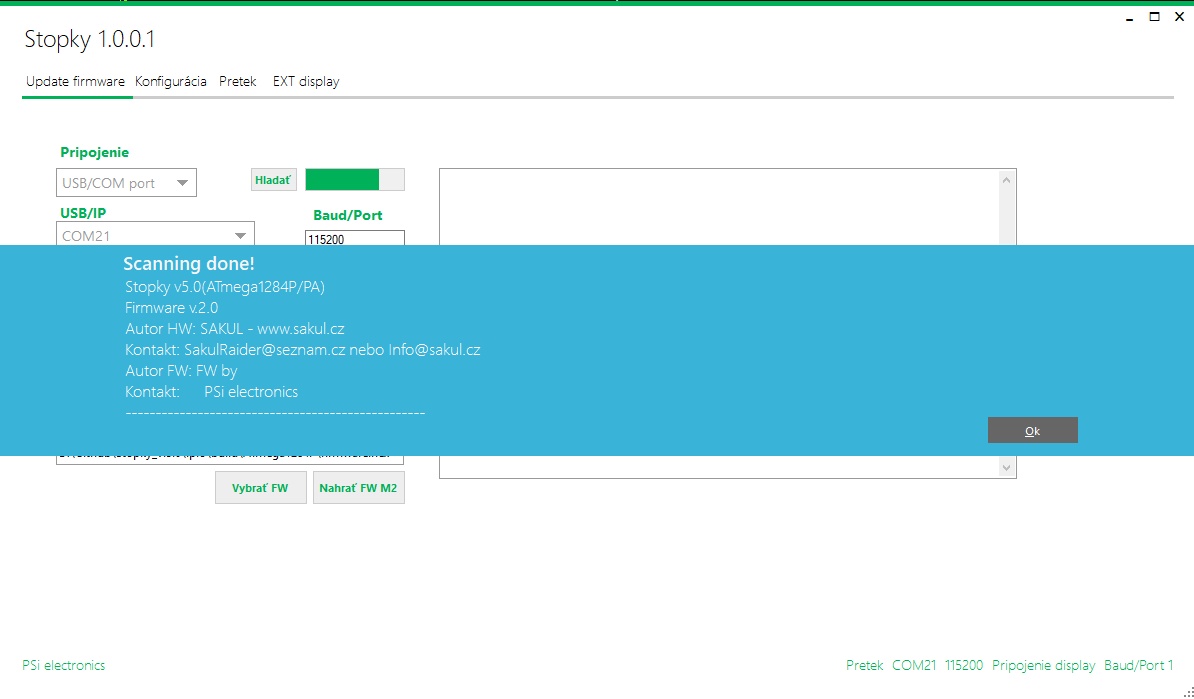 4. na samotnú aktualizáciu FW v stopkách, konfiguráciu režimov módu externého displeju, časov a ostatného miesto SD karty a config.txt alebo manuálnej konfigurácie vyvíjam aplikáciu pre Stopky ako bolo ukázané v príspevkoch vyššie. Takže pohodlne po pripojení USB do PC používateľ spustí aplikáciu vyberie súbor s FW a stlačí aktualizovať a všetko prebehne automaticky. Aplikácia si vždy kontroluje najnovšiu dostupnú verziu a aktualizuje sa sama pokiaľ je nejaká dostupná novšia verzia. Čo sa týka FW a aplikácie DEMO verzia sa testuje a vyladuje momentálne priamo v spolupráci so Sakulom a bude potom k dispozícií tu. Ostatné plné alebo individuálne verzie budú k dispozicíí po dohode priamo so mnou.