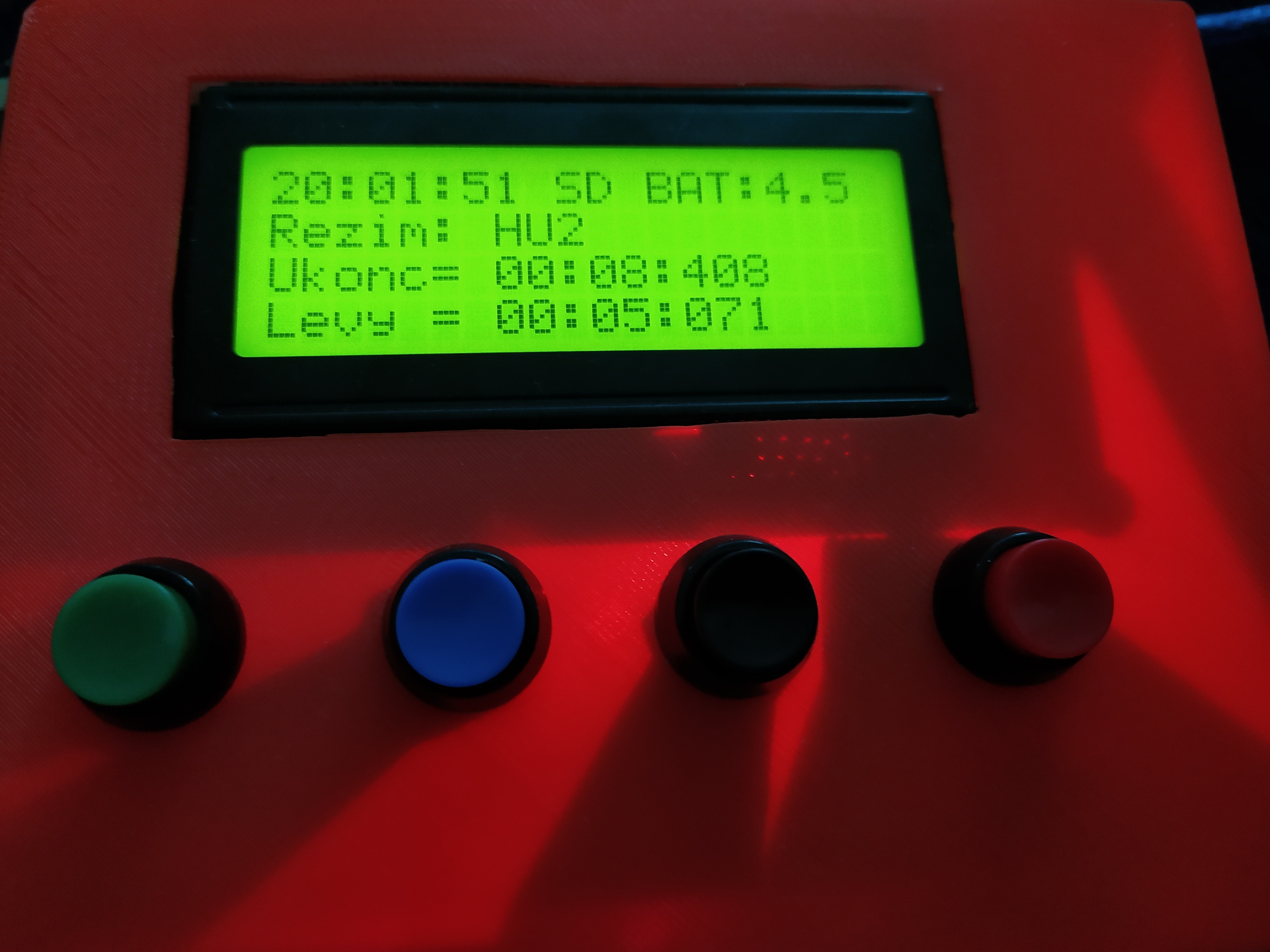 takže dané požiadavky boli celkom náročnejšie na úpravy takže musel vzniknúť úplne nový režim stopiek nazval som to HU2. V prípade použitia s 1 riadkovým EXT displayom po ukončení merania preblikáva na displayi U čas horší a L/P čas lepší v pár sekundových intervaloch. Na LCD displayi svieti vo vrchnom riadku Ukonc= horší čas a v spodnom riadku Lavy/Pravy podla toho ktorý bol lepší a čas. V prípade dojriadkového je to ako na obrázku v prílohe. Reset stopiek počas behu stopiek je vypnutý takže nie je možné resetovať ich pokial stopky bežia až do ukončenia oboch dráh. Naopak reset stopiek a spustiť odpočet je možný aj bez natiahnutých terčov. Následne spustiť stopky je možné až po natiahnutí terčov samozrejme. Snád som na nič nezabudol.