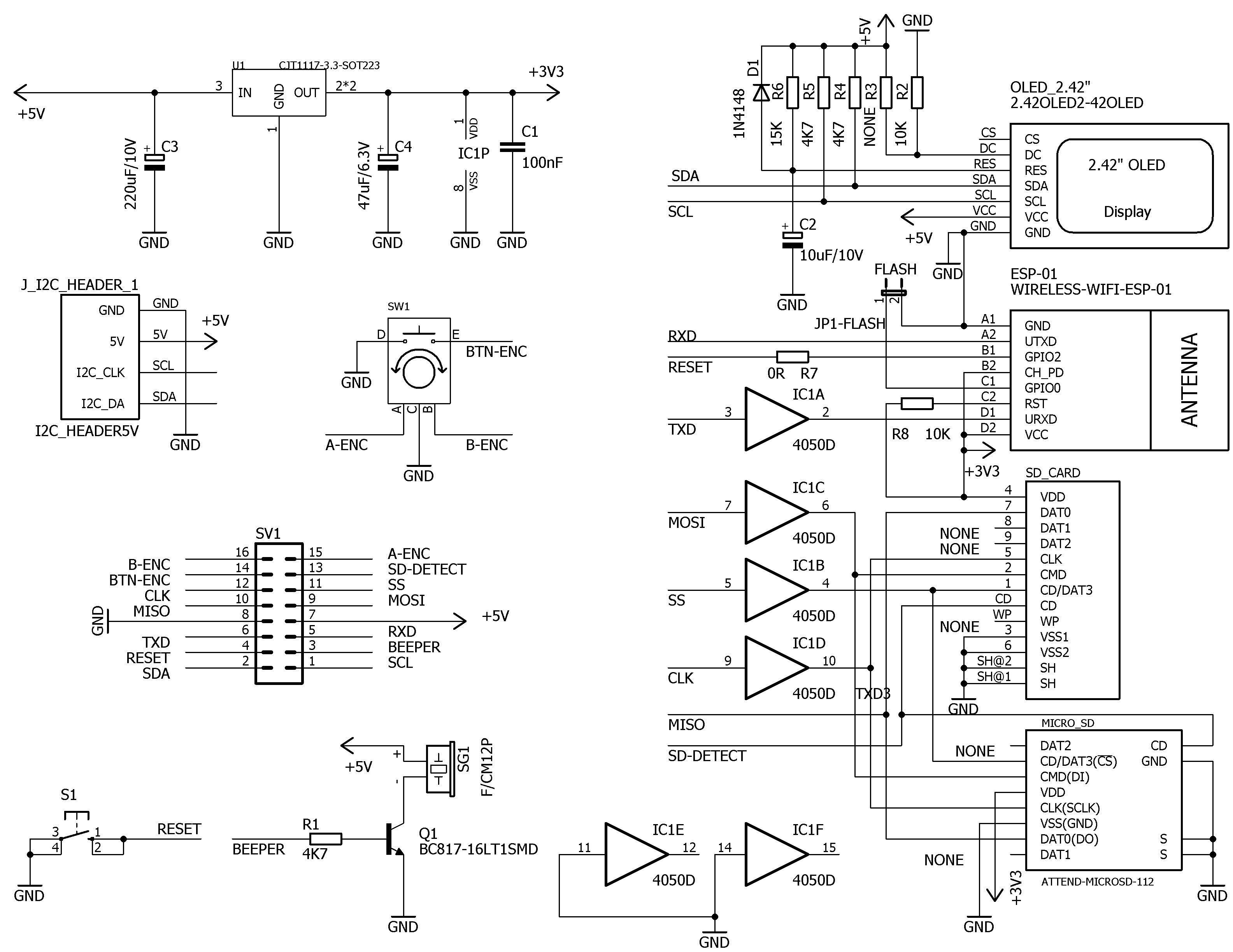 K tématu LCD - dotykový LCD mám nainstalovavý, co se týká funkcí a možností, bez připomínek. Akorát oči už nejsou co bývaly a všechno je dost malé, z tohoto pohledu mi víc vyhovuje standardní LCD12864. Dívám se na ten encoder, a pokud jsem našel správné schéma (??), měl by spínat proti GND a být napájený z MCU přes pull-up, takže taky OK. Vyzkouším, uvidím.