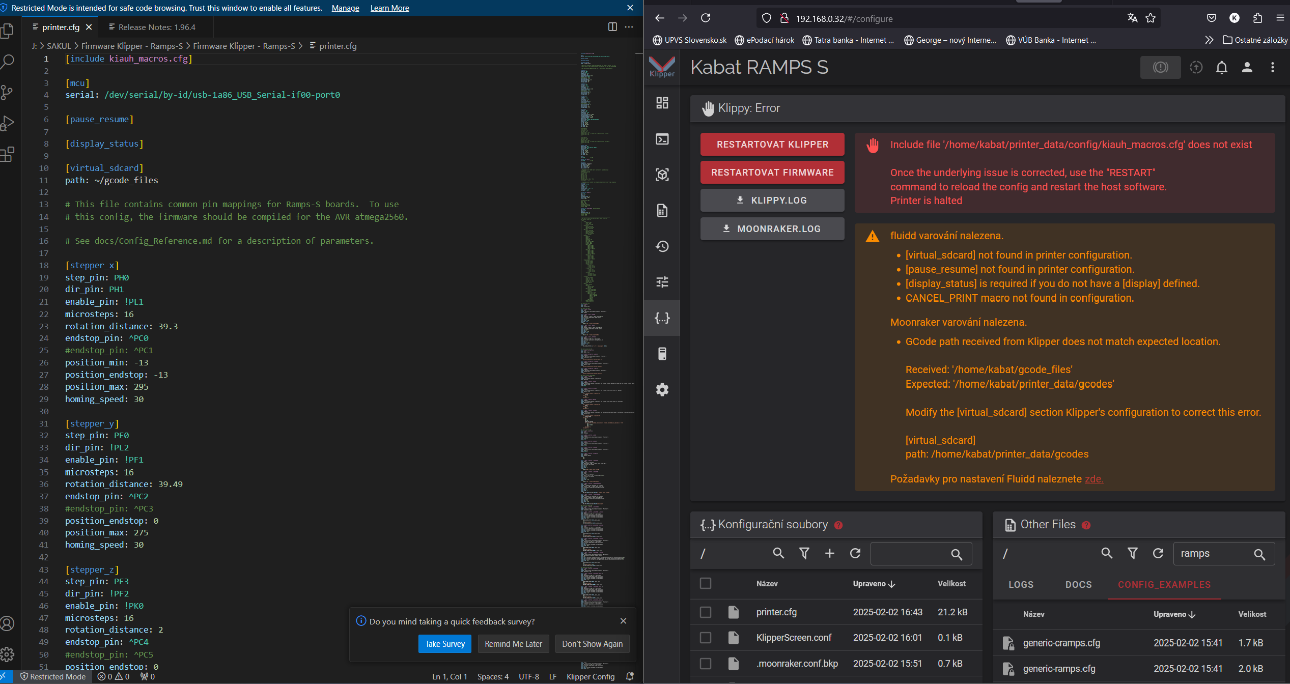 Na priloženom obrázku je vidieť listing printer.cfg a čo nato KLIPPER.