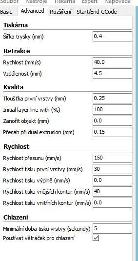 Dle mě to je potřeba odzkoušet každý sám na své tiskárně. Dle videa o nastavení Repetier host programu už zhruba vím co a jak nastavit ale stejně jsem si stím musel chvíly pohrát (pokuz/omyl) sám.