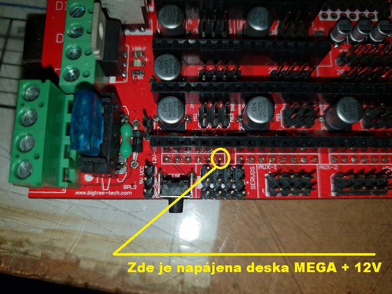 Napájení desky Arduino MEGA z desky Ramps v1.4