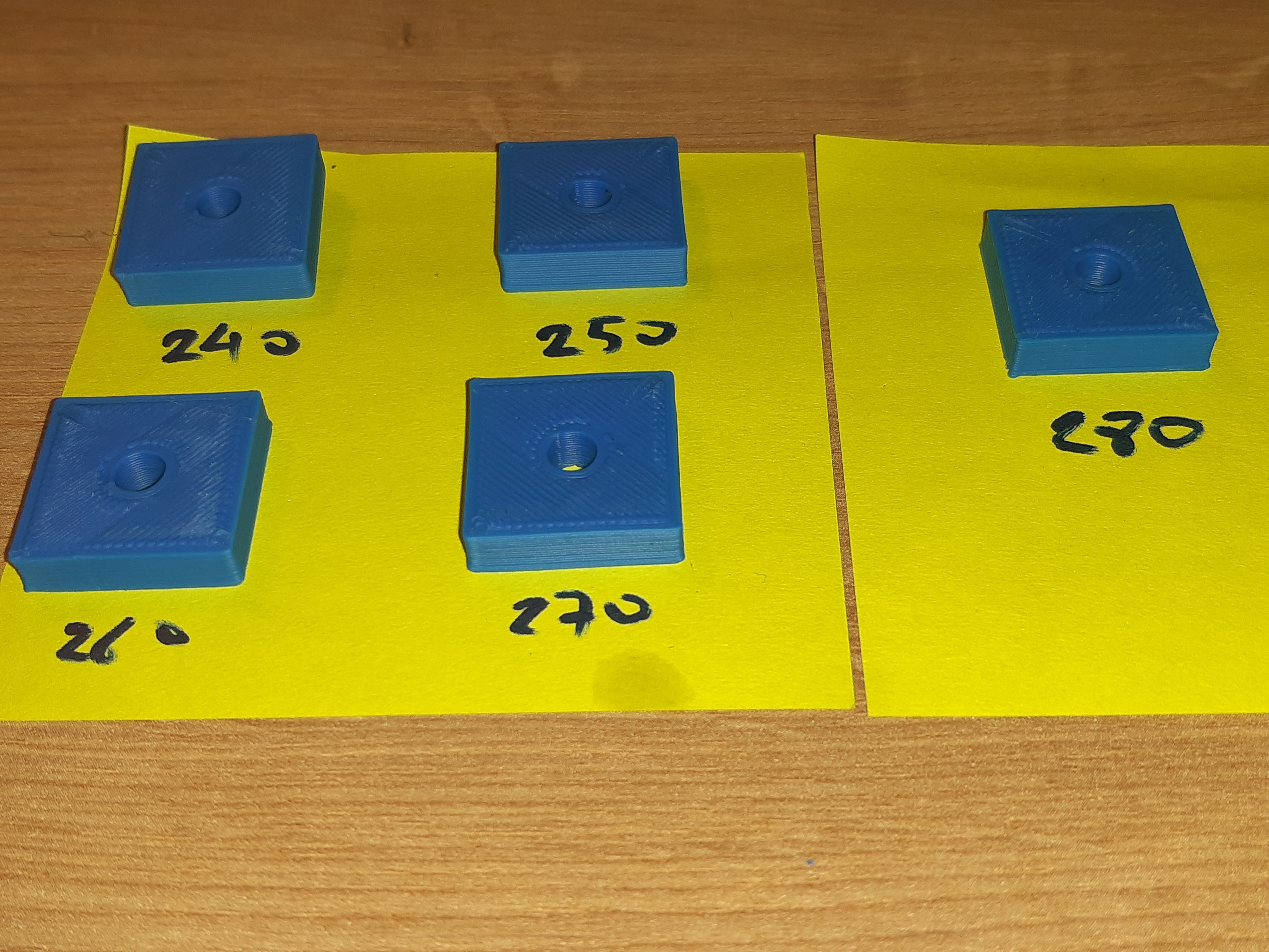 Zkusil jsem tisk na vyšší teploty od 240°C. Tvar objektu se určitě zlepšil, ale s horní stranou stále nejsem spokojen. Původně jsem myslel, že nerovnosti na horní straně jsou způsobeny přehříváním, proto jsem stále snižoval teplotu. Tisknu triskou 0,4mm a výšku vrsvy 0.3/0.35mm, pomůže použít tenší vrstvu 0.2/.25mm?