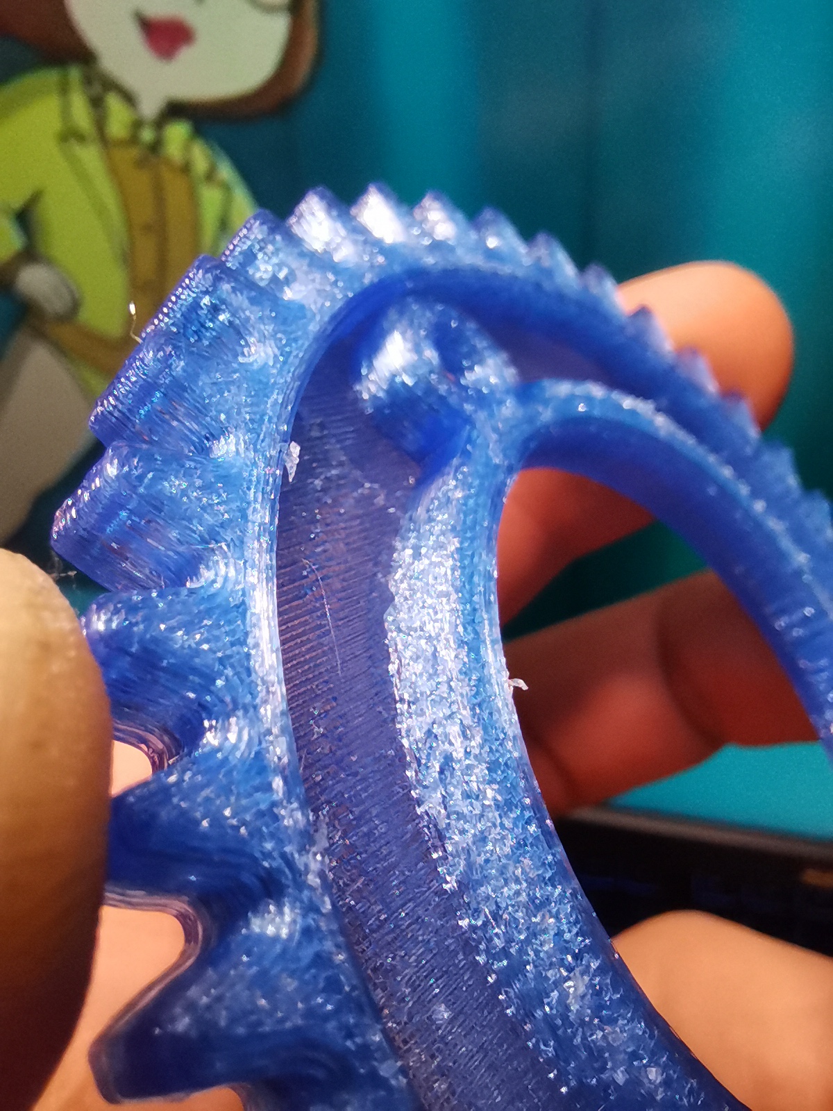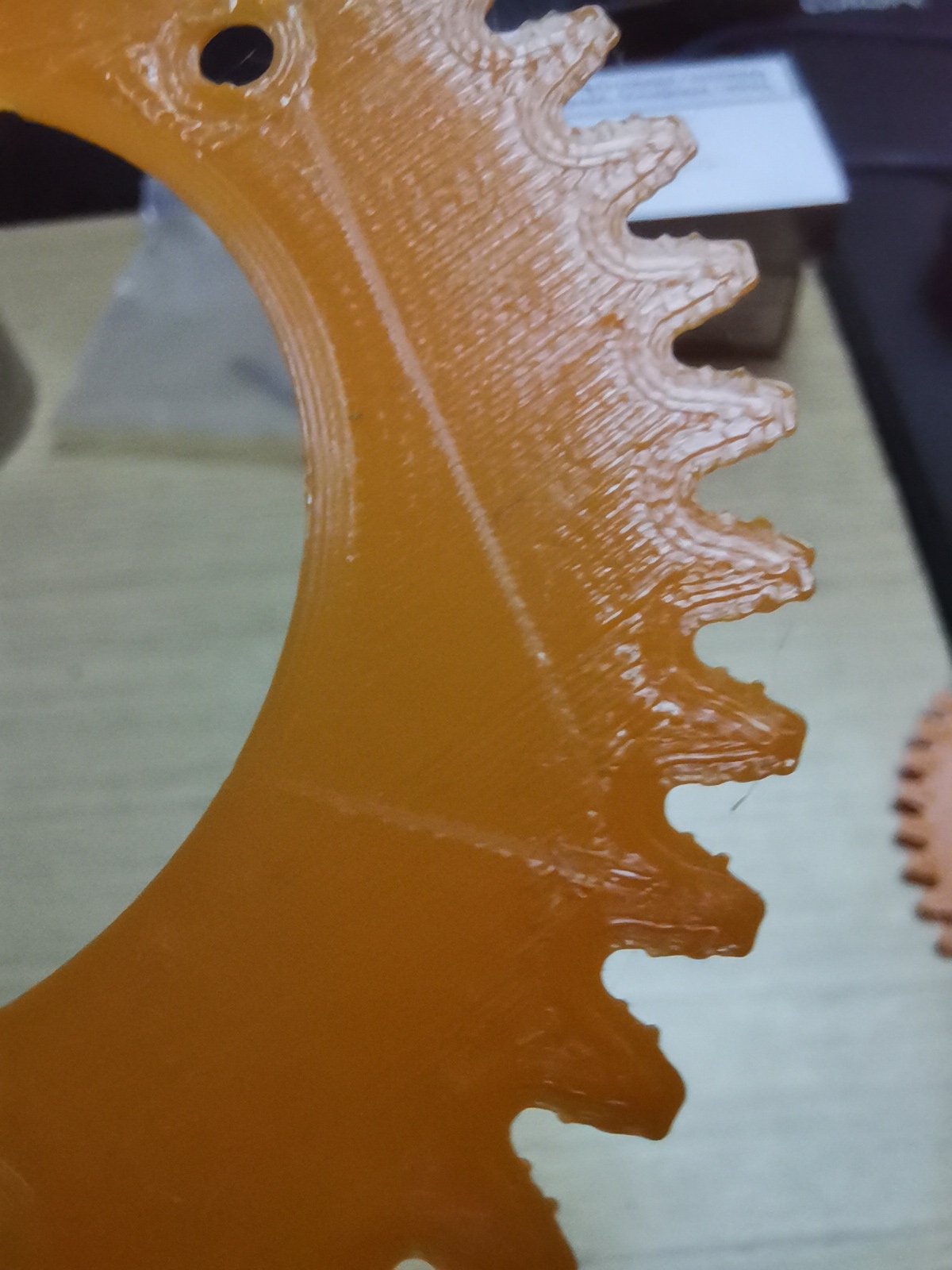 Slicer používám od creality... Zkoušel jsem ještě cura...ale to. Na konci každý vrstvi přejede přes všechny zuby ve dvouch kružnicich a zuby taky totálně pokazí... Přikládám. Obrazek