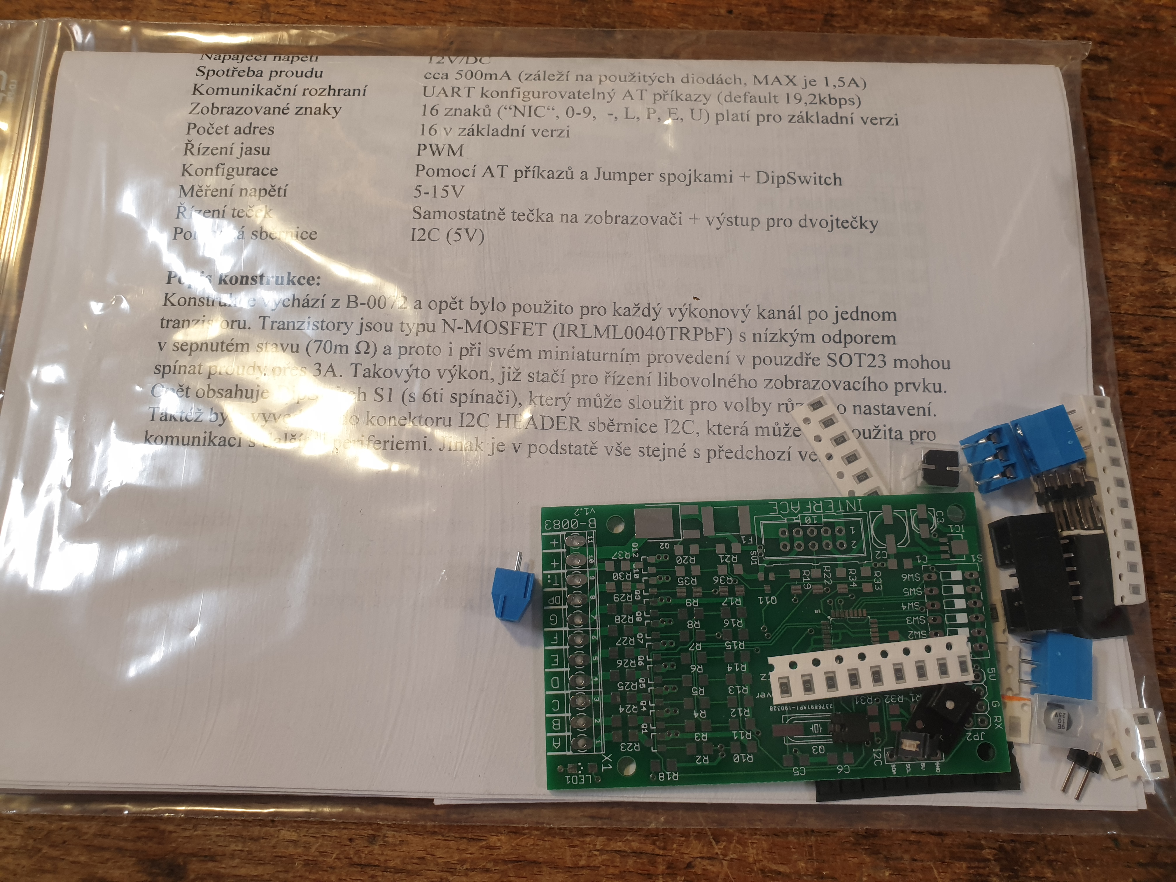 3. Kompletní sada součástek - Zobrazovač (stavebnice - včetně všech součástek, DPS, procesoru a návodu)
