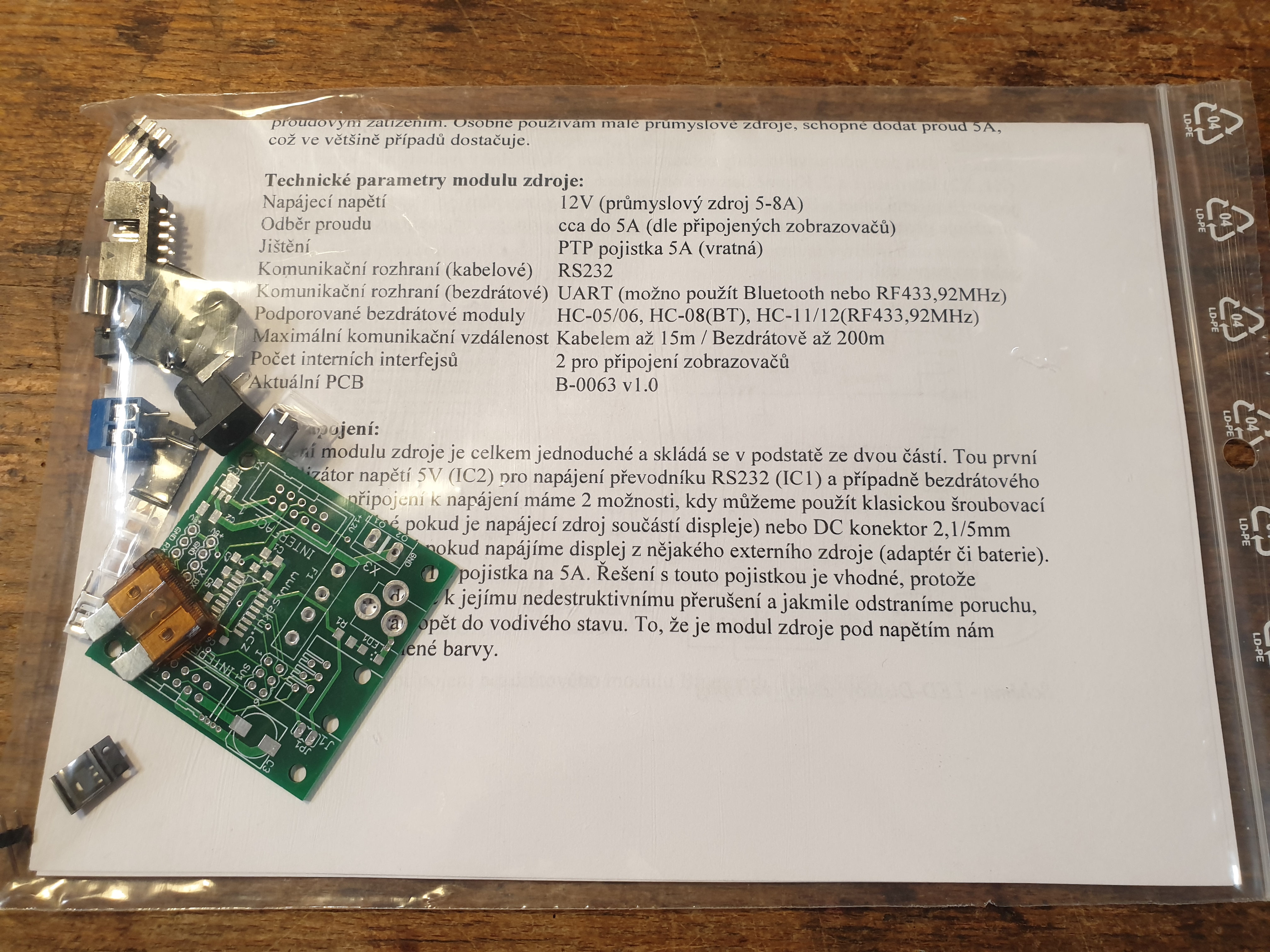 7. Sestavené a oživené zařízení - Zdroj (formou osazené DPS)