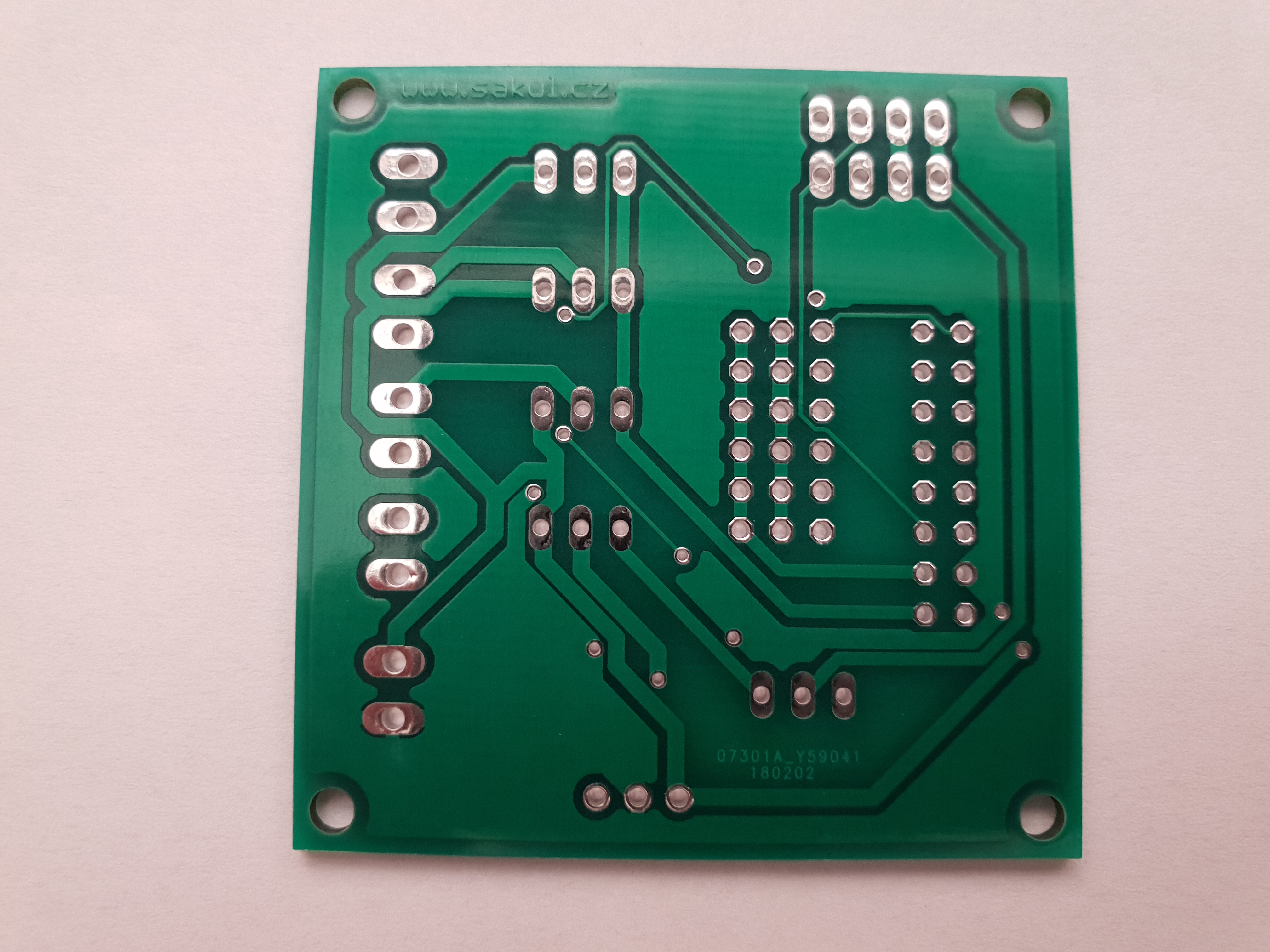 Deska plošného spoje je vyrobena profesionálně včetně prokovených otvorů a tištěných popisů.