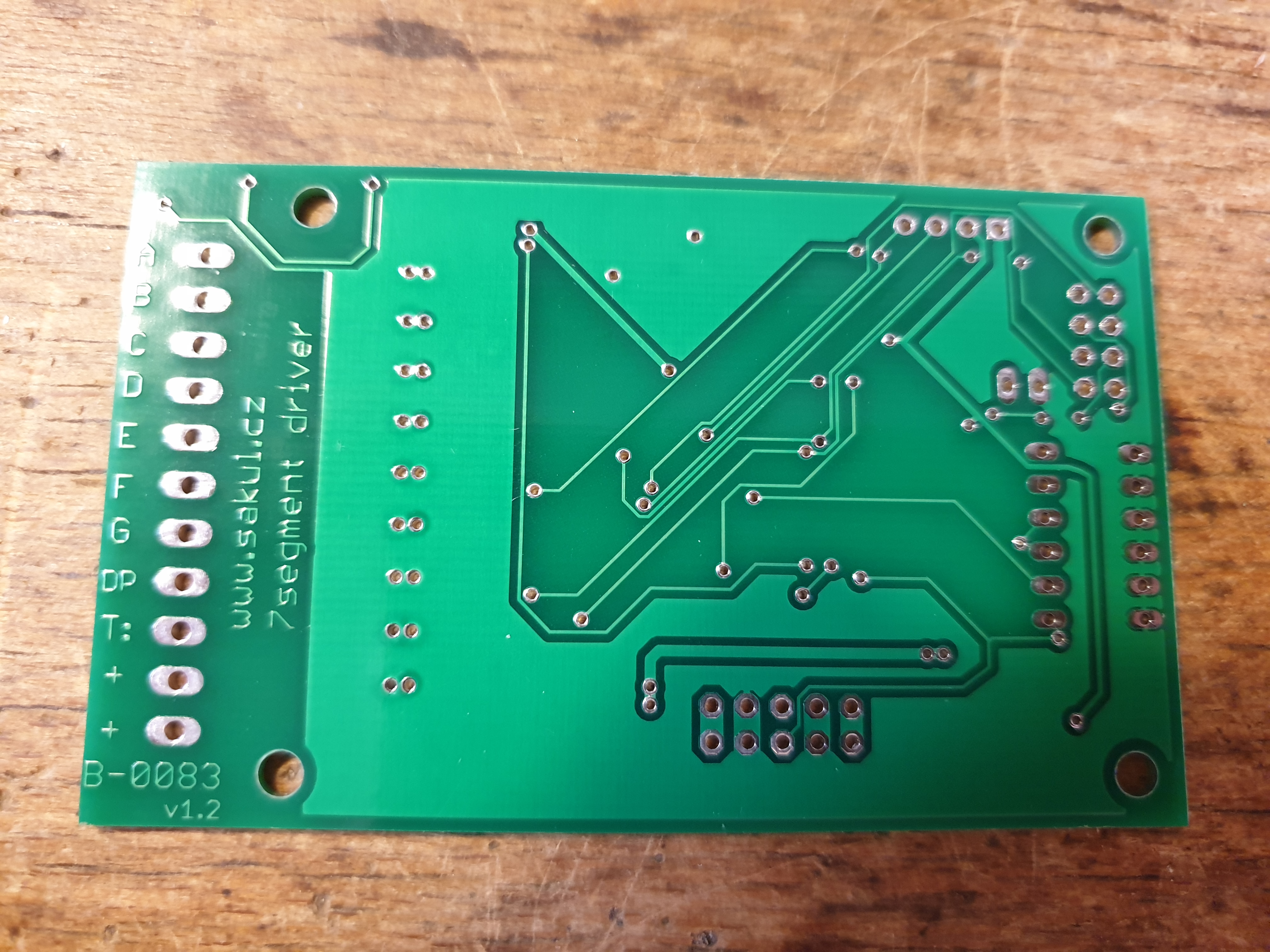 Deska plošného spoje zobrazovače je vyrobena profesionálně včetně tištěných popisů.