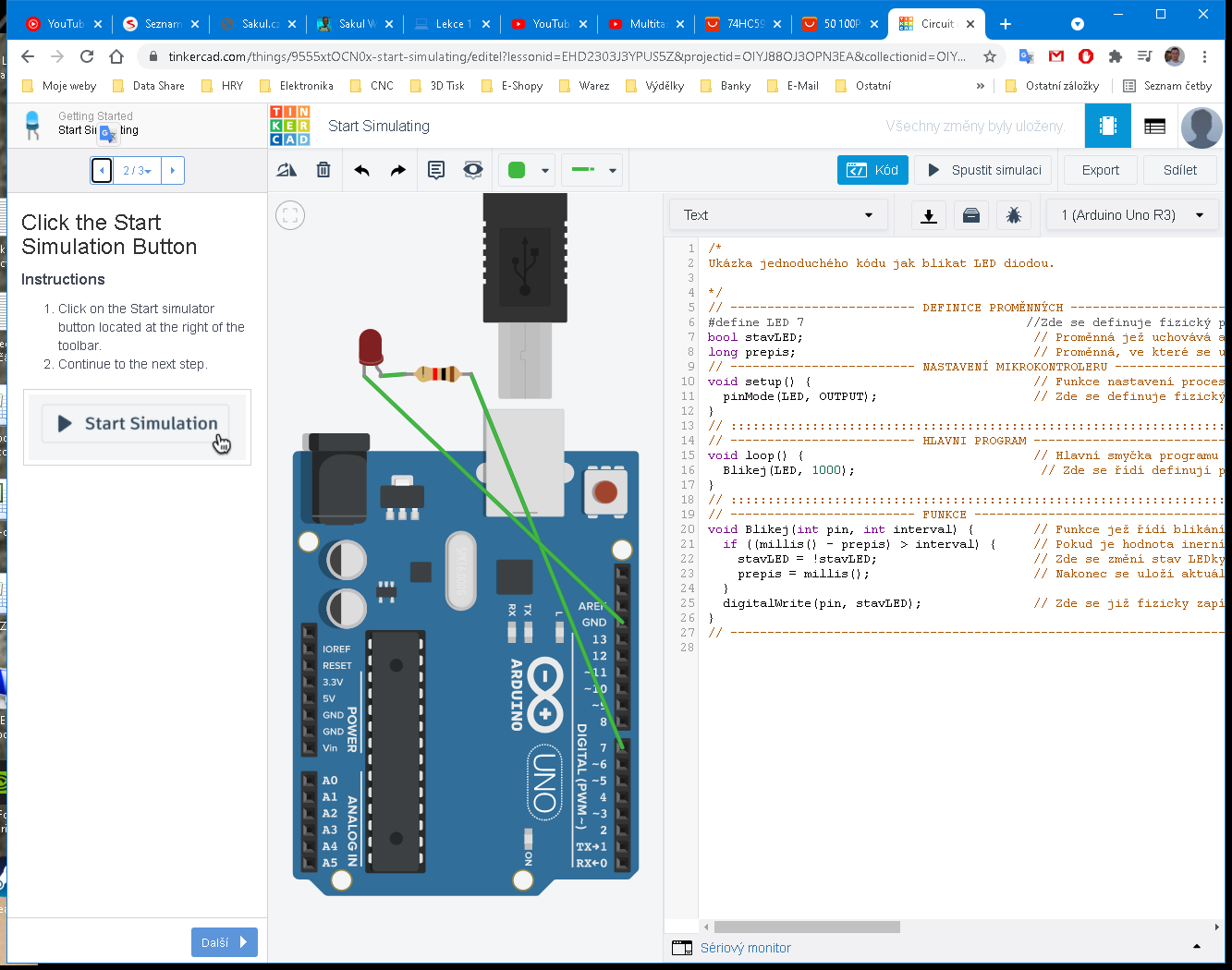 https://www.tinkercad.com/things/95GLpzxNxQePokud jste přihlášeni, můžete si toto zapojení přidat do Vaší knihovny a dále ho upravovat.