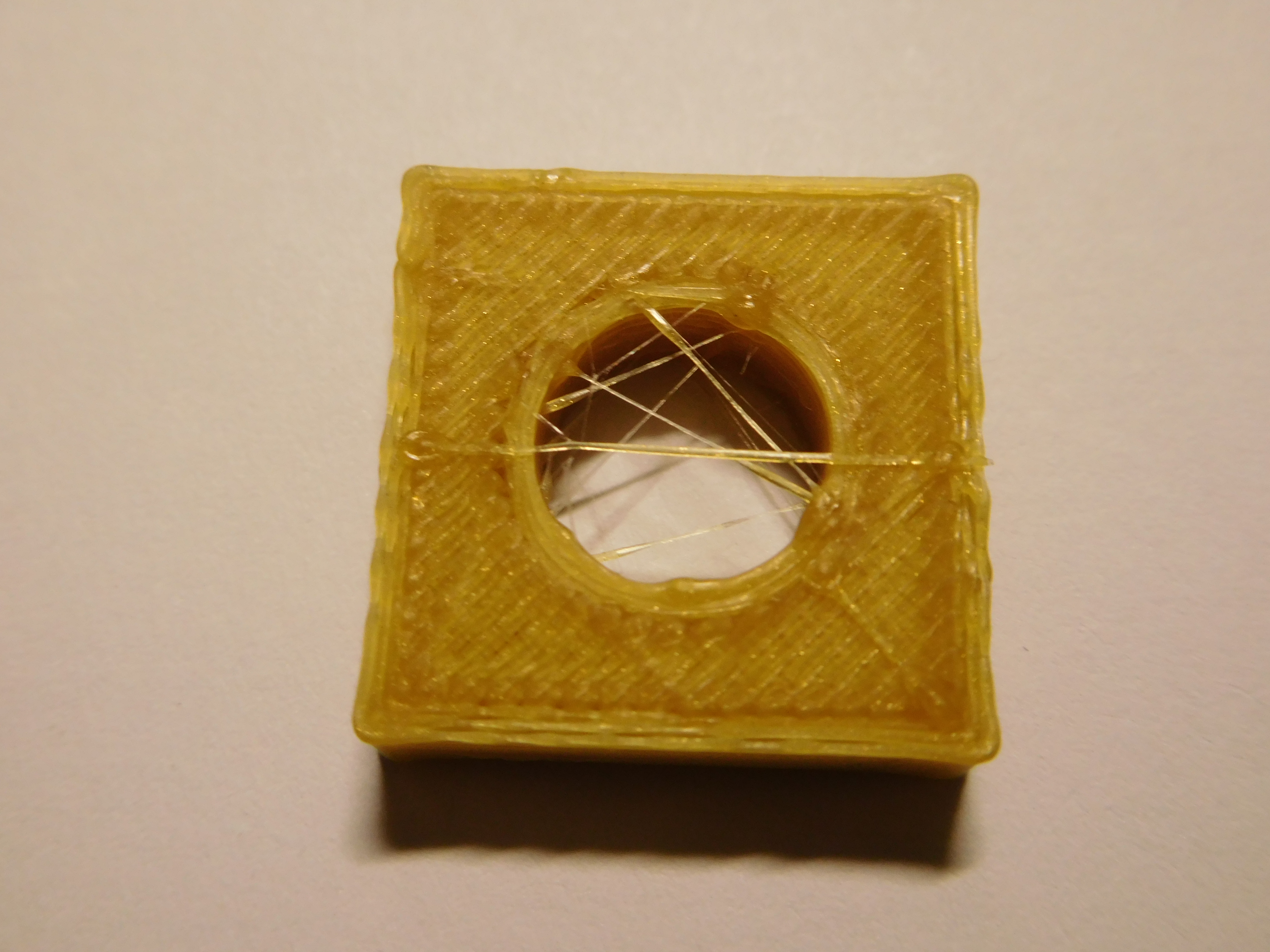 Tak jsem včera poslal na nově složenou tiskárnu první pokus o tisk. Myslím,že na první pokus to dopadlo celkem dobře,protože kostka má rozměr rozhozený o +- 0,4mm,ale vzhledově to není žádná paráda a budu muset nějak poladit a vyzkoušet co se vzhledem. Pokud někdo napíše nápad jak tomu pomoci k lepšímu výsledku budu rád. Nastavení jsem použil prozatím bez úpravy od zdejšího autora Sakula a tiskl jsem PLA tryskou 0,4mm na sklo natřené modrým TESA lepidlem (musel jsem to urvat násilím kleštěma, protože to nechtělo pustit ani po 30minutách). Nicméně ještě přidám poznatek ohledně mé AL desky MK3 o rozměru 220x220mm,síla 3mm a výhřevem.