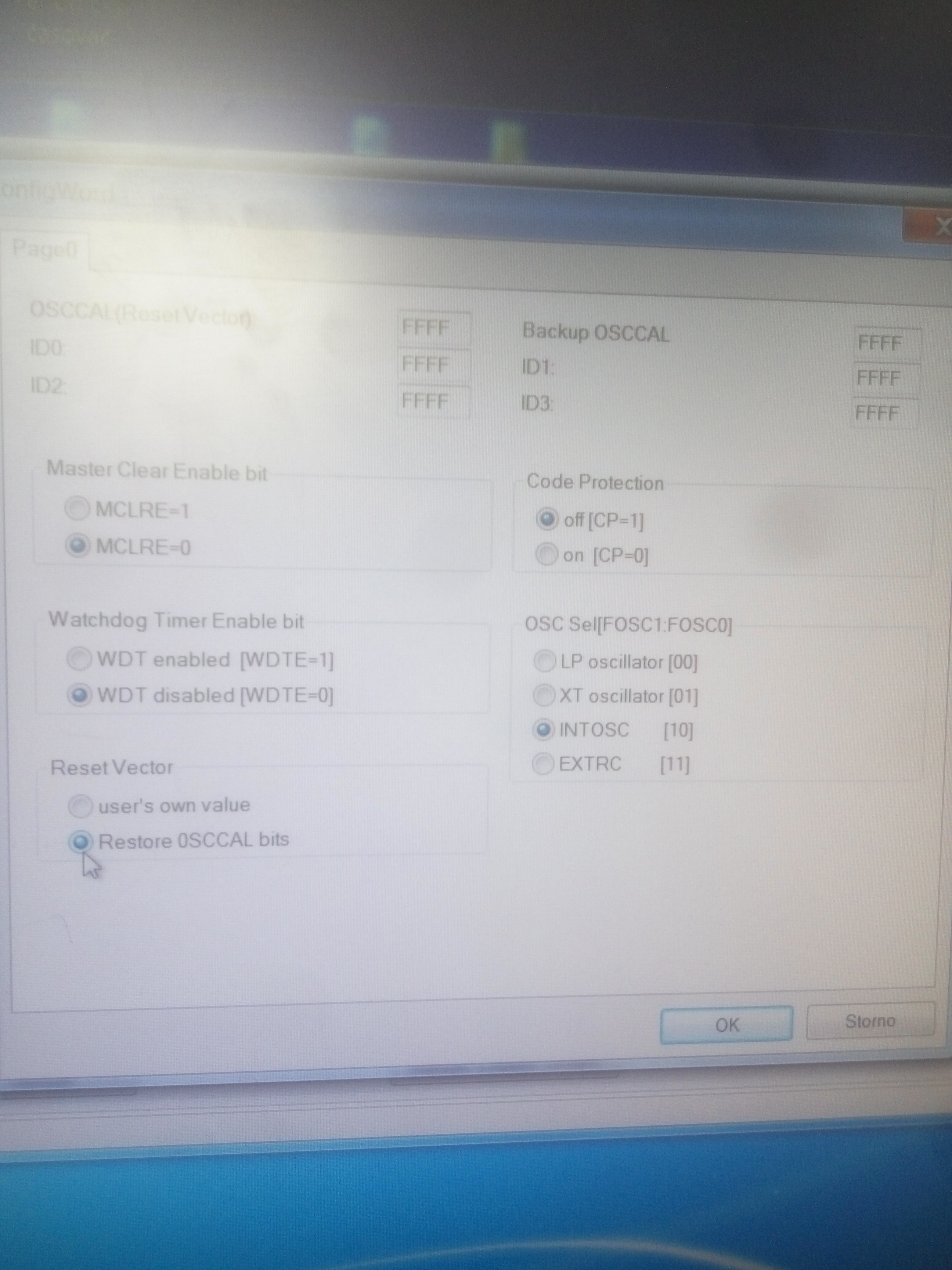 Bohužel nemám tušení co je Reset Vector. Zkontroluj zda máš navolen správný typ procesoru, aby se zobrazovaly relevantní pojistky.
