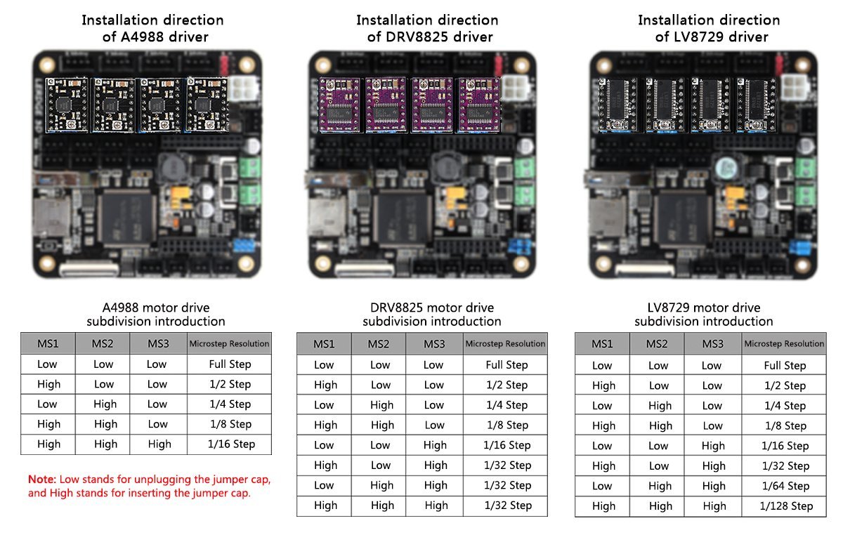 na ten první obrázek pozor (MKS Rumba), z nějakého neznámého důvodu to mají špatně, LV8729 má orientován trimr stejně jako drivery A4988.