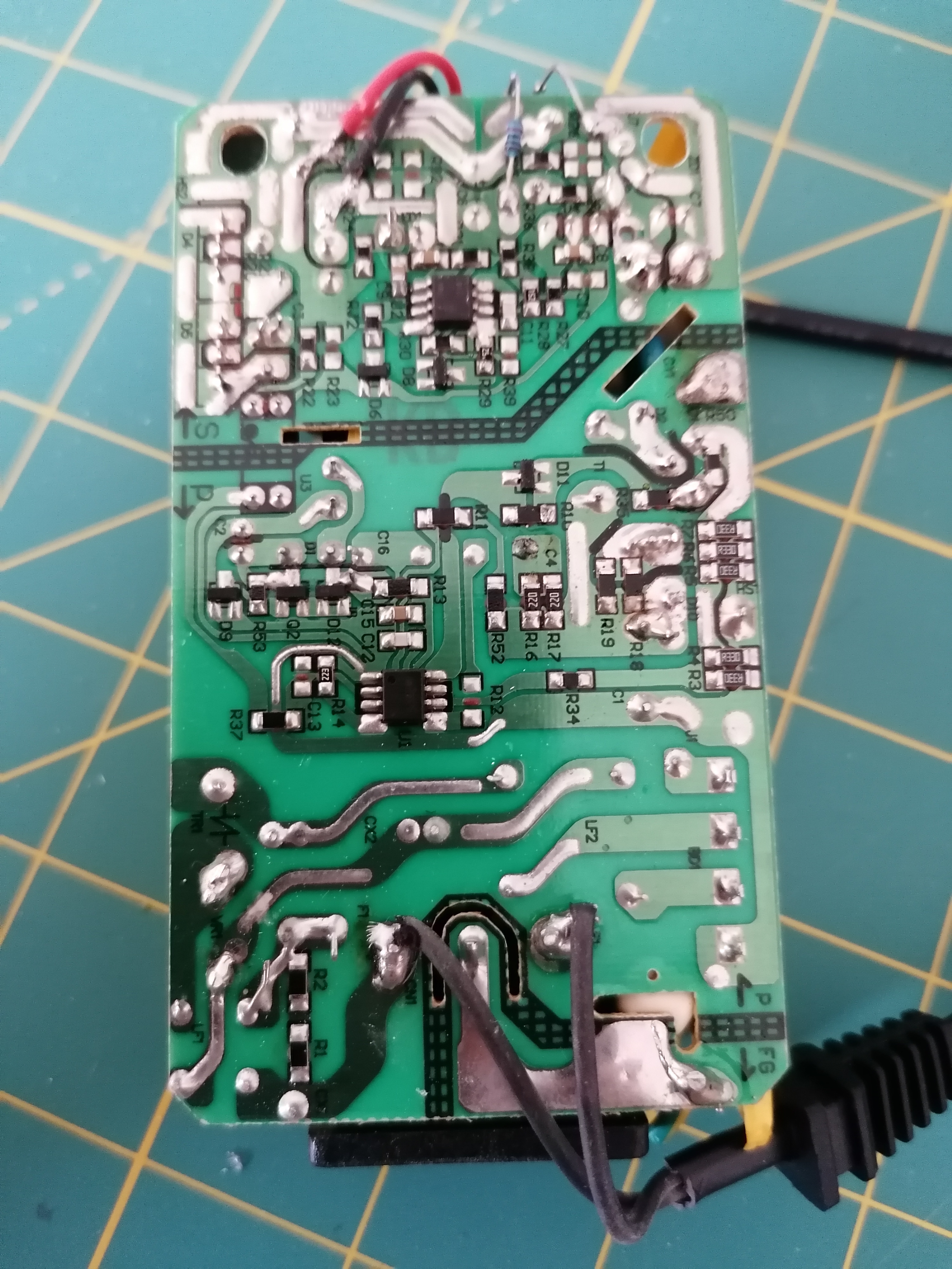 Dále mne zajímá zdroj nebo zdroje použité pro napájení elektroniky případně vřetena. Takže vyfotit štítky. U čínských zdrojů typu běžného síťového adaptéru je dobré ho i zvážit (uvést zde jeho váhu), protože údaje ze štítku nikdy neodpovídají (dosud jsem nenarazil na takovýto zdroj, kde hodnoty odpovídají) a váha nám může napovědět, zda ho rovnou vyhodit, nebo to nějak dále řešit.